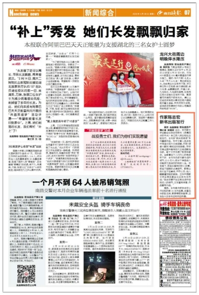据悉,本书是作家陈志宏公开出版的第15本作品集,由著名作家彭见明、野莽等联袂推荐,正在各大实体书店和网店热售。(稿件来源:南昌晚报 责任编辑:罗楚颖)