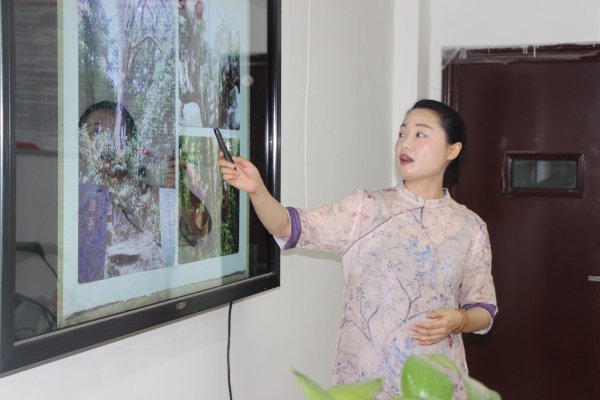 刘君首先对茶的起源、发展、分类等进行了细致的介绍,随后,她又讲解示范了整个茶叶审评流程,大家聚精会神地一起学习开汤、香气、汤色、滋味、叶底步骤。整个活动现场气氛愉快、热烈,大家品着一杯香茗,共度“国际茶日”,深深的感受茶文化的魅力。