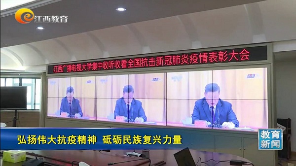 9月8日,江西教育电视台《教育新闻》栏目以《弘扬伟大抗疫精神 砥砺民族复兴力量》为题,报道我校集中收听收看全国抗击新冠肺炎疫情表彰大会活动。