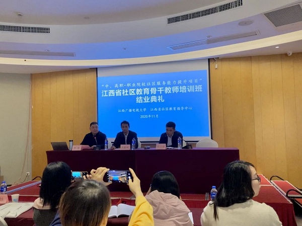 11月15日,由我校承办的国培项目“江西省社区教育骨干教师培训班”在南昌圆满结束。江西广播电视大学社会教育学院院长余歙峰,副院长李强、但小澍出席结业仪式,来自全省各地市、县、区108名学员参加会议。仪式由但小澍主持。