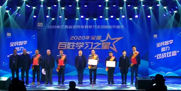省民政厅、省人力资源和社会保障厅、省科学技术厅、省体育局、省广播电视局、共青团江西省委、省科学技术协会、九江职业技术学院领导及相关负责人,九江市教育局领导,九江市各县、区政府分管负责同志、教育局和社区教育机构负责同志,我省荣获2020年度国家“百姓学习之星”“终身学习品牌项目”荣誉称号的获奖代表共计100余人参加了主会场开幕式。