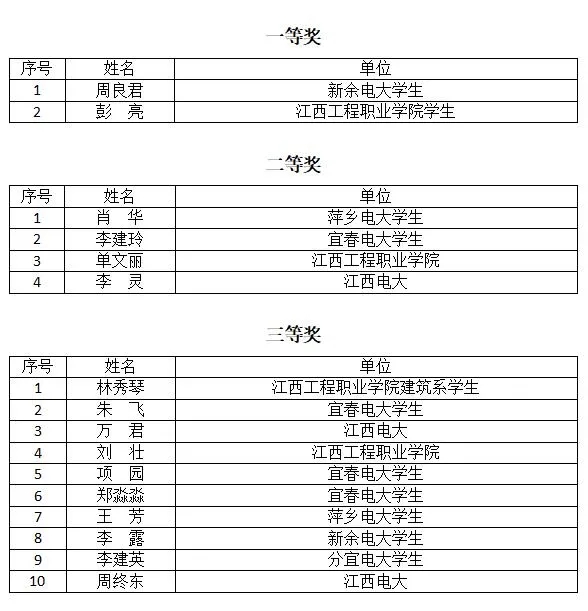 现将各类活动比赛获奖名单表彰如下: