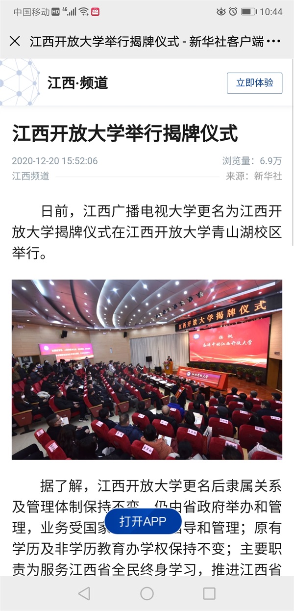 新华社:江西开放大学举行揭牌仪式