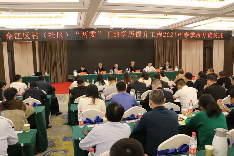 4月21日上午,鹰潭电大在余江区举行了村(社区)“两委”干部学历提升工程春季班开班仪式。余江区委副书记黄贵开,江西广播电视大学鹰潭市分校党组书记、校长刘正良,副校长官志龙,余江区委组织部副部长鲁兵海,余江区委党校常务副校长范建军出席仪式。