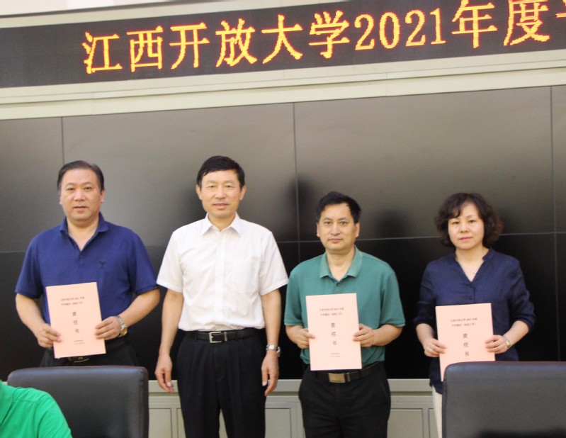 会上,易小明给各部门(单位)颁发《英国上市365官网2021年度平安建设(综治工作)责任书》。