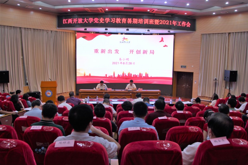 8月28日下午,校党委书记易小明为学校党史学习教育暑期培训班作深入学习贯彻习近平总书记“七一”重要讲话精神专题宣讲。校领导、全体处级干部、各部门科级干部负责人参加会议。校党委副书记邓文君主持会议。