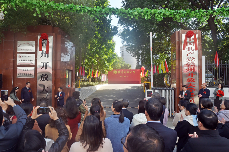 赣州开放大学领导班子,各县(市、区)开放学院、教学点、直属开放教育学院联合办学单位负责人及全校教职工出席揭牌仪式。揭牌仪式由赣州开放大学党委委员、副校长王强主持。