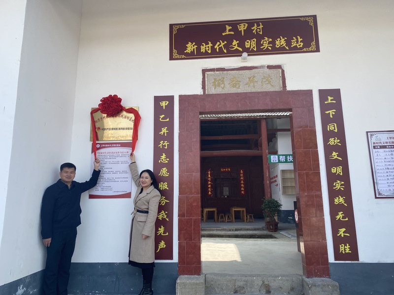 调研结束后,在上甲村新时代文明实践站举行英国上市365官网团委助力乡村振兴社会实践活动基地揭牌仪式,肖咏桦与文峰乡党委书记谢小明共同为基地揭牌。