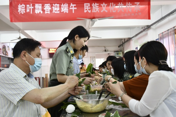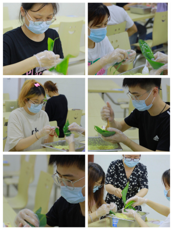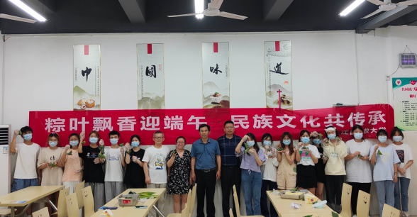 “党的十八大以来,习近平总书记曾在不同场合多次提到屈原,赞叹其心忧家国、情牵百姓、勇于探索、清正高洁的人格魅力和思想精髓,指出今天纪念屈原,是为了寻找古人精神与当下需求的连接点,以溯民族精神之源流、辟与时俱进之路径,用屈原精神为生民‘塑心’,为实践‘立行’”。学生们一边包着粽子一边聆听校团委副书记肖咏桦讲述端午节蕴含的家国情怀故事。同学们纷纷表示,包粽子主题活动不仅增强了大家的动手能力,还给我们上了一堂难得的爱国主义思政教育课,我们要学习屈原的爱国主义精神,刻苦学习、练就本领,将来更好地报效祖国,为国争光。