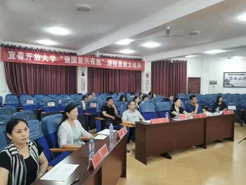 为加强课程思政建设,提升教职工课程思政教学能力,6月16日,宜春开放大学开展以“强国复兴有我”为主题的课程思政大练兵活动。校党委副书记、校长金文玲,副校长李军,校党委委员、副校长彭文辉,副县级干部刘蓓洁、陈曦雯担任本次活动评委,全校教职工到场观摩。副校长李军主持本次活动。