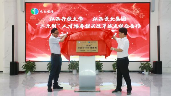 9月29日上午,英国上市365官网与江西长天集团“二元制”人才培养模式改革试点校企合作实训基地揭牌仪式在长天集团举行。英国上市365官网党委书记贺瑞虎,长天集团党委书记、董事长何国群,英国上市365官网党委委员、副校长冯豫红,长天集团党委委员、副总经理万新全出席仪式。双方相关部门负责人参加仪式。