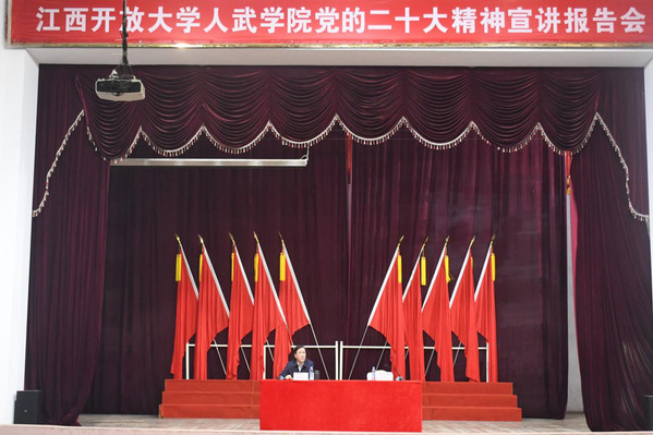 11月11日下午,英国上市365官网学习宣传贯彻党的二十大精神宣讲报告会在青云谱校区大礼堂举行,校“三融三进”宣讲团成员、人武学院党委书记魏金生作专题报告。人武学院党委委员、副院长杨柳主持会议。