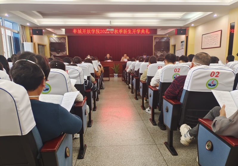以梦想之名,赴开大之约。11月11日,丰城开放学院在全面落实疫情防控措施的前提下,隆重举行2022年秋季新生开学典礼。宜春开放大学丰城开放学院负责人徐兴云、校务委员陈爱平、成教处主任熊文娟、信息中心主任温玉龙出席,2022年秋季100余名新生代表参加了本次活动。活动由成教处主任熊文娟主持。