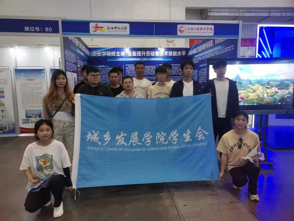 城乡发展学院学生参加科技成果对接会,图为学生在我校展位合影