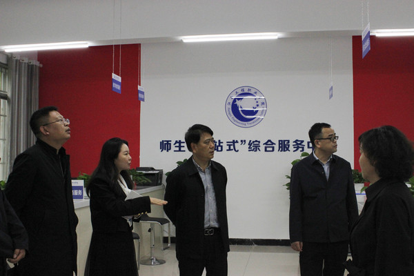 贺瑞虎一行首先实地察看了“一站式”学生服务中心,仔细询问服务中心运行情况,人员值班情况,学生咨询情况等。他指出,要进一步夯实“以学生为中心”的服务理念,以学生的实际需求为导向,科学谋划,合理布局,充分发挥“一站式”学生服务中心的作用,助力学生成长成才。