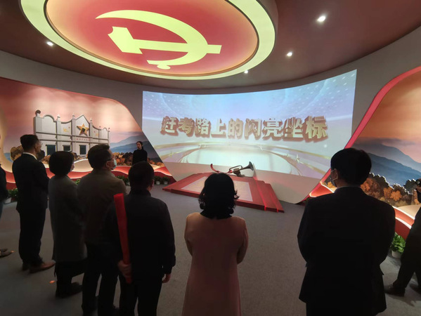 在江西革命烈士纪念堂,全体党员怀着对烈士崇敬的心情,参观了“赶考路上的闪亮坐标”主题展览。展览分“理想信念”“担当实干”“清正廉洁”“家风传承”四个篇章,通过文字、图片、情景再现等形式,生动讲述了20位江西籍英雄模范人物的感人事迹。在一段段文字、一张张图片、一件件实物前,全体党员认真聆听讲解,重温党的历史,缅怀革命先烈,接受党性教育。