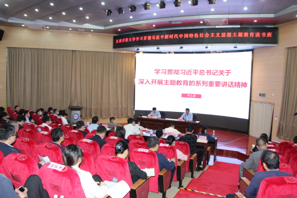 根据学校学习贯彻习近平新时代中国特色社会主义思想主题教育读书班工作安排,5月10日上午,读书班第三场专题辅导报告在学术报告厅举行。校党委副书记邓文君作学习贯彻习近平总书记关于深入开展主题教育的系列重要讲话精神专题辅导报告。党委委员、组织人事部(教师工作部)部长熊江鹏主持辅导报告会。校领导黄平槐、王水平、冯豫红,校党委委员罗军涛出席。学校全体处级干部参加。