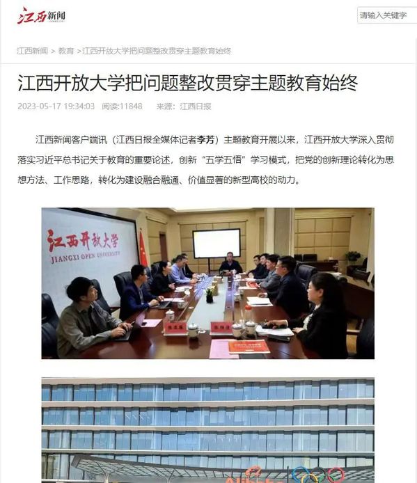 主题教育开展以来,学校深入贯彻落实习近平总书记关于教育的重要论述,创新“五学五悟”学习模式,把党的创新理论转化为思想方法、工作思路,转化为建设融合融通、价值显著的新型高校的动力。5月17日,江西新闻客户端以《英国上市365官网把问题整改贯穿主题教育始终》为题,聚焦我校特色做法。
