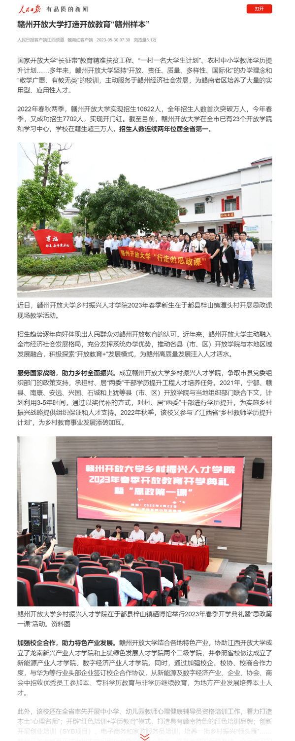 人民日报:赣州开放大学打造开放教育“赣州样本”