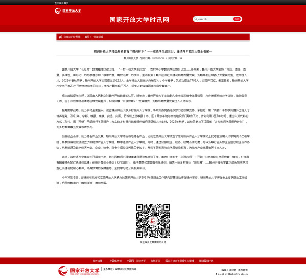 国开时讯网:赣州开放大学打造开放教育“赣州样本”——在读学生超三万,连续两年招生人数全省第一