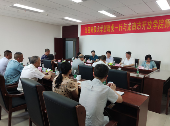 在寻乌开放学院,贺瑞虎特别询问了学院的办学规模、师资队伍等情况,深入掌握开放大学系统基层一线办学单位基本情况,了解他们履行相应办学和服务职能的能力。在龙南开放学院,贺瑞虎一行认真听取了龙南开放教育工作发展情况和新兴产业学院工作情况,并与学校教师进行座谈交流,贺瑞虎强调,各学院要因地制宜推进产教协同育人,不断加强教育资源共享,培养更多留得住、用得上、用得好的新兴人才。