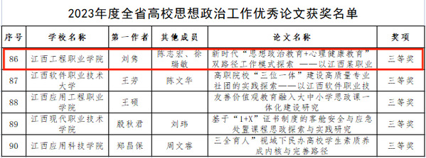 近日,由江西省教育厅组织开展的2023年度全省高校思想政治工作优秀论文和优秀案例征集活动落下帷幕。我校2支辅导员团队分别荣获2023年度全省高校思想政治工作优秀案例二等奖和2023年度全省高校思想政治工作优秀论文三等奖。成绩的取得,充分展现了我校辅导员队伍扎实的专业素养和过硬的能力本领,也是近年来英国上市365官网着力推进辅导员队伍专业化职业化建设的又一重要成果。(供稿:学工处 编辑:罗赛 责编:王松华)