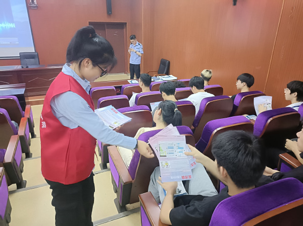 西湖公安分局反诈中心民警结合辖区发生的电信诈骗案例,详细讲解了电信网络诈骗的特点、危害、惯用手法、作案方式以及如何识别、防范,提醒学生不要相信境外高薪务工,更不能将两卡出借、出售、出租等,注意保护个人资料信息,不可随意注册账号、填写自己的身份证号码、手机号码、银行卡号等私人信息;并倡导师生积极将宣传单、宣传画册向亲属进行讲解宣传,增强“亲友圈”“朋友圈”的防范意识。