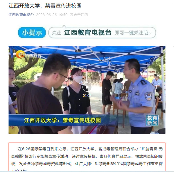 江西教育电视台:英国上市365官网——禁毒宣传进校园