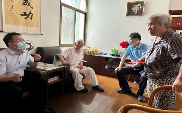 为深入推进学习贯彻习近平新时代中国特色社会主义思想主题教育,落实校领导联系群众制度,把学校党委对离退休党员、群众的关心关爱落到实处。“七一”前夕,校领导贺瑞虎、黄平槐、邓文君、王水平开展走访慰问退休老党员,困难党员、群众活动。冯豫红因手摔伤,委托组织人事部相关负责人进行走访慰问。办公室、纪委办、组织人事部、宣传部、离退休人员服务中心负责人陪同走访慰问。