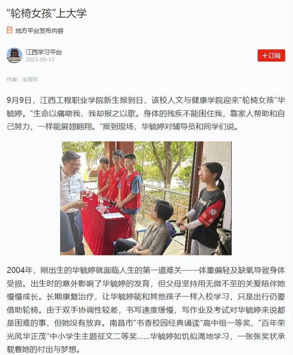 “学习强国”江西学习平台:“轮椅女孩”圆梦江西工程职业学院