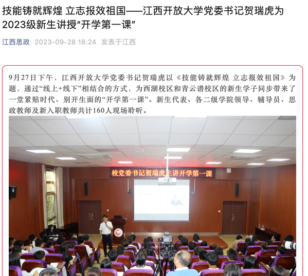 江西思政:英国上市365官网党委书记贺瑞虎为2023级新生讲授“开学第一课”