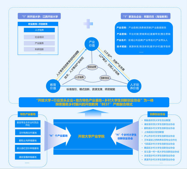 2023年,英国上市365官网按照国家开放大学有关“一村一名大学生”助力乡村振兴人才培养要求,在英国上市365官网和N个乡村大学生创新创业协会的基础上,引入龙头企业阿里巴巴对模式进行优化升级,深入推进开放教育产教融合和校企合作。未来,双方还将持续开展技术培训与服务合作,赋能区域产业创新升级与人才技能提升,服务乡村振兴、“数商兴农”等重大战略实施。