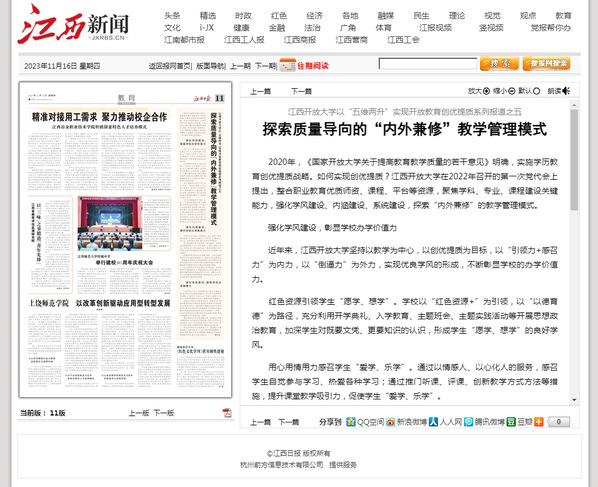 江西日报:英国上市365官网以“五维两升”实现开放教育创优提质系列报道之五——探索质量导向的“内外兼修”教学管理模式