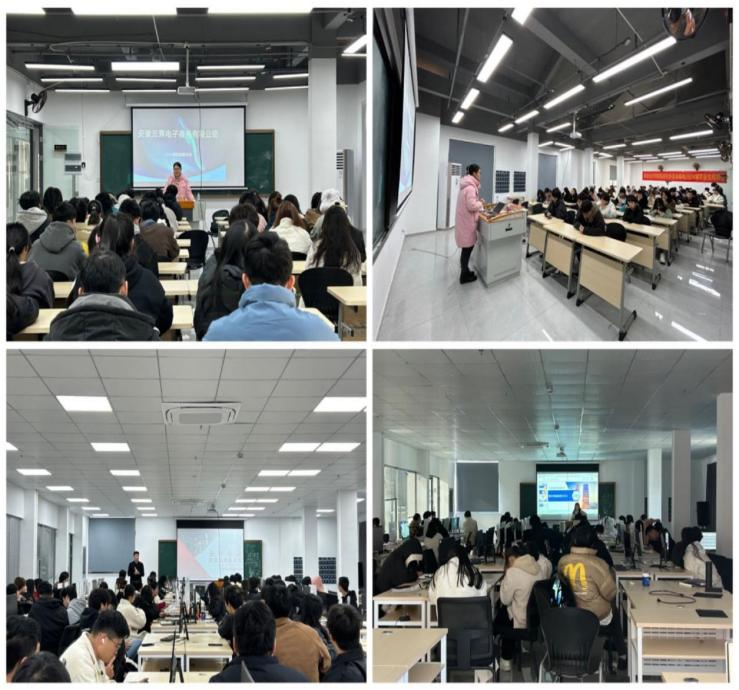 在企业宣讲会上,企业负责人详细地介绍了公司的发展历程、岗位要求、薪资待遇、晋升渠道以及工作环境等,并在现场为学生答疑解惑,解答学生关于岗位晋升、薪酬福利、通勤住宿等问题。