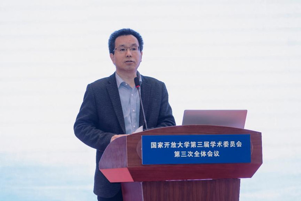 国家开放大学党委委员、副校长、学术委员会主任委员李松教授作题为《创新驱动,勇攀高峰,以高质量学术研究服务中国特色世界一流开放大学建设》的工作报告。李松强调,教育强国建设对开放大学发展提出了新的更高要求。推动开放大学高质量学术研究要考虑开放大学具体实际。一是聚焦时代议题,回答时代之问;二是加强学科建设,以学科专业建设促进高质量学术研究;三是提倡应用研究,提高科研成果转化率。此外,委员会还应立足中国、放眼世界,推动中国特色世界一流开放大学的建设。