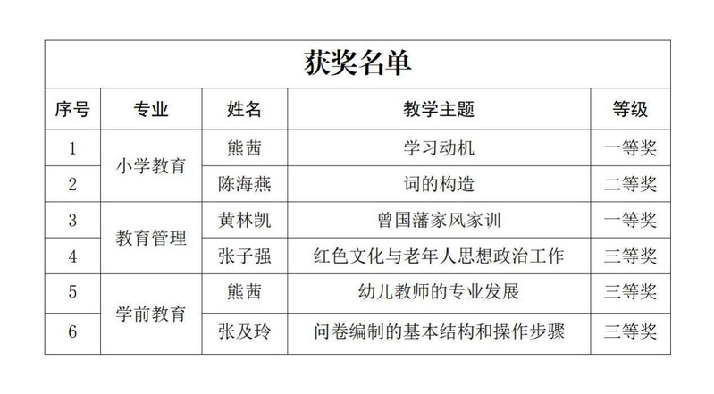 在国家开放大学教育类专业课程思政优秀教学设计方案征集活动中,学校人文与健康学院选送的6个作品均在此次活动中获奖,其中一等奖2项,二等奖1项,三等奖3项。