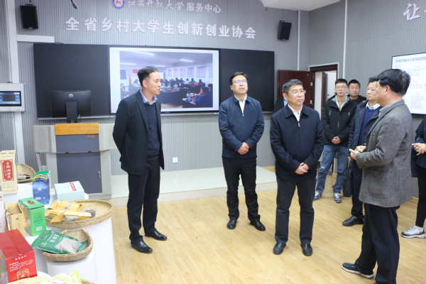 1月12日下午,江西省政府办公厅党组成员、江西省政府副秘书长杜章彪,江西省教育厅二级巡视员杨春年一行到学校考察调研职业教育、开放教育和老年教育。校党委书记贺瑞虎,校党委副书记、校长黄平槐,校党委委员、副校长冯豫红及学校相关部门负责同志陪同考察。
