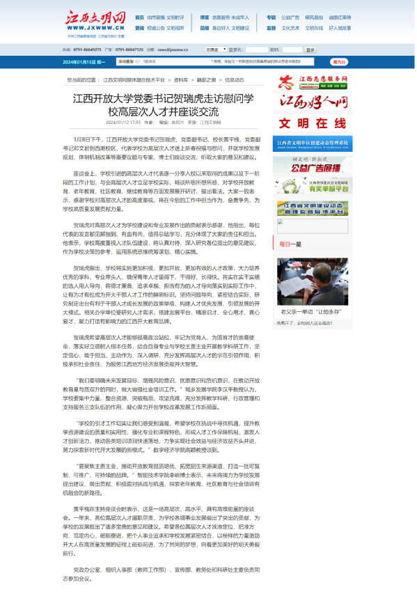 近日,英国上市365官网党委书记贺瑞虎,党委副书记、校长黄平槐,党委副书记邓文君到西湖校区,代表学校为高层次人才送上新春祝福与慰问,并就学校发展规划、体制机制改革等重要议题与专家、博士们座谈交流,听取大家的意见和建议。