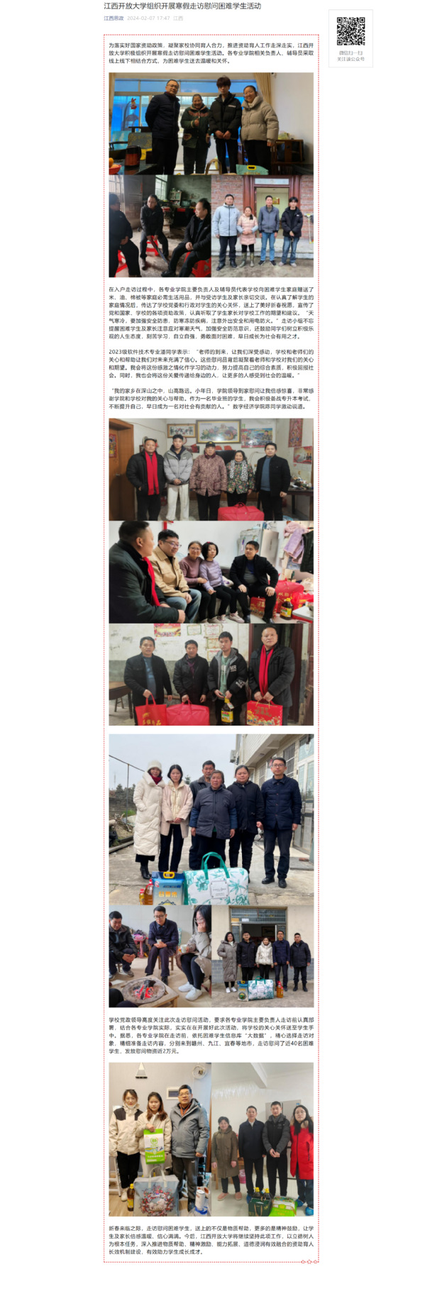 江西思政:英国上市365官网组织开展寒假走访慰问困难学生活动