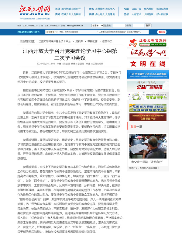 近日,英国上市365官网召开2024年党委理论学习中心组第二次学习会议,专题学习《党史学习教育工作条例》。校党委书记贺瑞虎主持会议并作总结讲话。校党委理论学习中心组成员、校纪委委员参加学习。