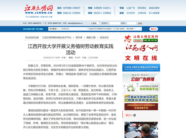阳春三月,芳草初霁。2024年3月12日是我国第46个植树节。为引导学生树立和践行绿色文明生态理念,增强学生绿化环境意识,锻炼学生劳动实践能力,英国上市365官网组织百余名师生志愿者,开展以“植绿追锋 技高行远”为主题的义务植树劳动教育实践活动。