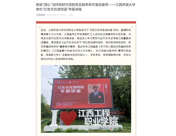 近日,英国上市365官网马克思主义学院举办了“红色文化专家进校园”活动,邀请到共青团第十九大代表、江西省萍乡市安源路矿工人运动纪念馆宣传科长段志能,为师生代表作红色文化专题讲座。