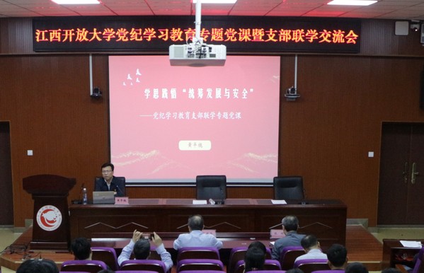 4月26日,学校在西湖校区学术报告厅开展党纪学习教育专题党课暨支部联学活动,校党委副书记、校长黄平槐,校党委委员、副校长徐光兵参加活动并讲授纪律党课。机关党委五支部、七支部、八支部、十支部、十一支部全体党员和各专业学院党政主要负责人、全体辅导员参加联学活动。校党委委员、党委宣传部长张明主持联学活动。