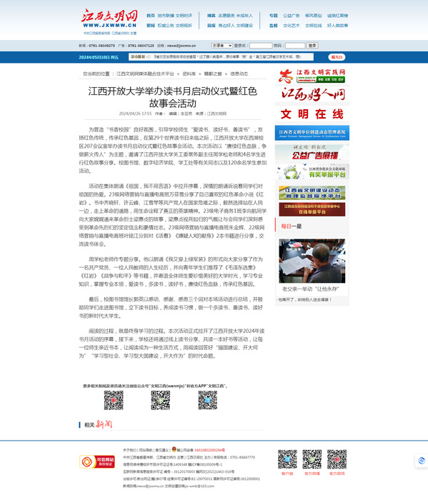 为营造“书香校园”良好氛围,引导学校师生“爱读书、读好书、善读书”,发扬红色传统,传承红色基因,在第29个世界读书日来临之际,英国上市365官网在西湖校区207会议室举办读书月启动仪式暨红色故事会活动。本次活动以“赓续红色血脉,争做薪火传人”为主题,邀请了英国上市365官网关工委常务副主任周学松老师和4名学生进行红色故事分享。校图书馆、数字经济学院、学工处等有关同志以及120余名学生参加活动。