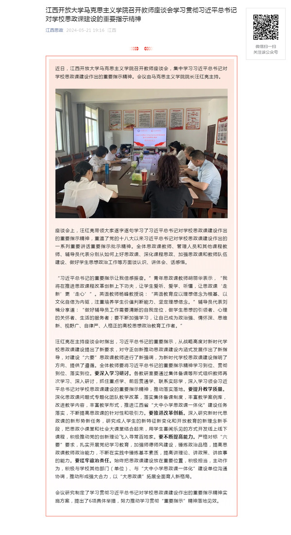 近日,英国上市365官网马克思主义学院召开教师座谈会,集中学习习近平总书记对学校思政课建设作出的重要指示精神。会议由马克思主义学院院长汪红亮主持。原文地址:https://mp.weixin.qq.com/s?__biz=MzI1OTM4MDMzMA==&mid=2247589726&idx=1&sn=f4727baa972d9d682986a861d09a299c&chksm=ea7a1a5bdd0d934de8bf7db323158a5f1302b69147a3c064cc0048db207350fd9fcf013dc40a&mpshare=1&scene=1&srcid=0521TSdnXrx5XIkOTHR6jiiO&sharer_shareinfo=2f66ce55f7051cfa5e809fbeb8be135a&sharer_shareinfo_first=2f66ce55f7051cfa5e809fbeb8be135a&exportkey=n_ChQIAhIQVMv4iU477LjWZCQCq0RuORL1AQIE97dBBAEAAAAAAAzZAgDPP9YAAAAOpnltbLcz9gKNyK89dVj0Q%2BTjawMIX9vWmnbrdm%2BEYdRNHYjz2vY0SnJY9d9ckePogvsydyOZ2sQ%2FHWBm7IoMG98q8dFdAw9Dk4hyTusu%2FtDWvTxySZA8DXRh91cPKF6dPIZ3SWa86OJFwzAvW0s6YsDlQfDfmO33jhOascRvlVgdC2YSytZUAkkBKYUuNNHqTlBZZrwyN2JH2kYq%2FXgB1gyqOEiwNVedHNbnCE9yow3RTuzRU5ayV6cWr9%2FnthnLzj7%2F0lEuVGHifBuCSy%2BO01UmuXohmnol06y9vdt%2F&acctmode=0&pass_ticket=naWhV2WfNH0AFh73AIgKrDMHF442MHuvf4UDb1M4KyXV%2B3UFbx9a%2BeJ7jGO%2BOl%2Bl&wx_header=0#rd (责任编辑:罗楚颖)