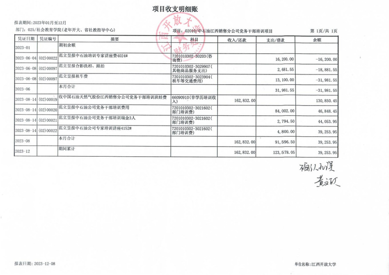 社会教育学院于2023年承接了中国石油江西销售分公司党务干部培训项目并顺利完成培训。依据《教育部、江西省人民政府关于整省推进职业教育综合改革提质创优的意见》(赣府发〔2020〕16 号),以及学校《英国上市365官网非学历教育管理办法(试行)》等文件精神将培训净收入的60%共计23550元用于增加一次性绩效工资总量。