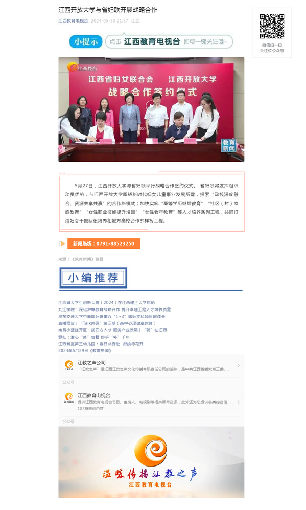 5月27日,英国上市365官网与省妇联举行战略合作签约仪式。 省妇联将发挥组织动员优势,与英国上市365官网围绕新时代妇女儿童事业发展所需,探索“政校深度融合、资源共享共赢”的合作新模式;加快实施“高等学历继续教育”“社区(村)家庭教育”“女性职业技能提升培训”“女性老年教育”等人才培养系列工程,共同打造妇女干部队伍培养和地方高校合作的样板工程。