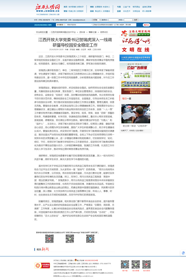 近日,英国上市365官网党委书记贺瑞虎深入三个校区,调研督导各部门、单位、二级学院的校园安全稳定工作,全面开展安全隐患排查,确保学校各项事业平稳有序推进。校党委委员、副校长冯豫红,校党委委员熊江鹏、罗军涛分别陪同调研。