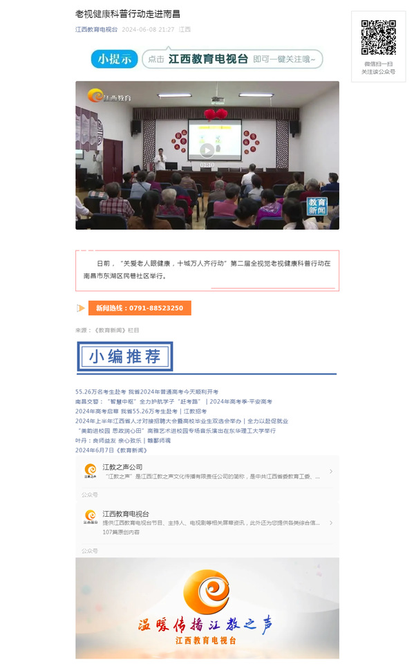 日前,“关爱老人眼健康,十城万人齐行动”第二届全视觉老视健康科普行动在南昌市东湖区民巷社区举行。原文地址:https://mp.weixin.qq.com/s?__biz=MzA4NjQyNTEzNw==&mid=2649794859&idx=6&sn=2a0e1838b4e4b11f19a9d5535235da17&chksm=87cce275b0bb6b63314e9ad68912f62fd034ec204955dca8d76ada5a50760f11365d65ccc692&mpshare=1&scene=23&srcid=0611HUxwMGxZ38Ua582GN7xt&sharer_shareinfo=903681e138c376d750b8461ea58b3765&sharer_shareinfo_first=903681e138c376d750b8461ea58b3765#rd (责任编辑:罗楚颖)