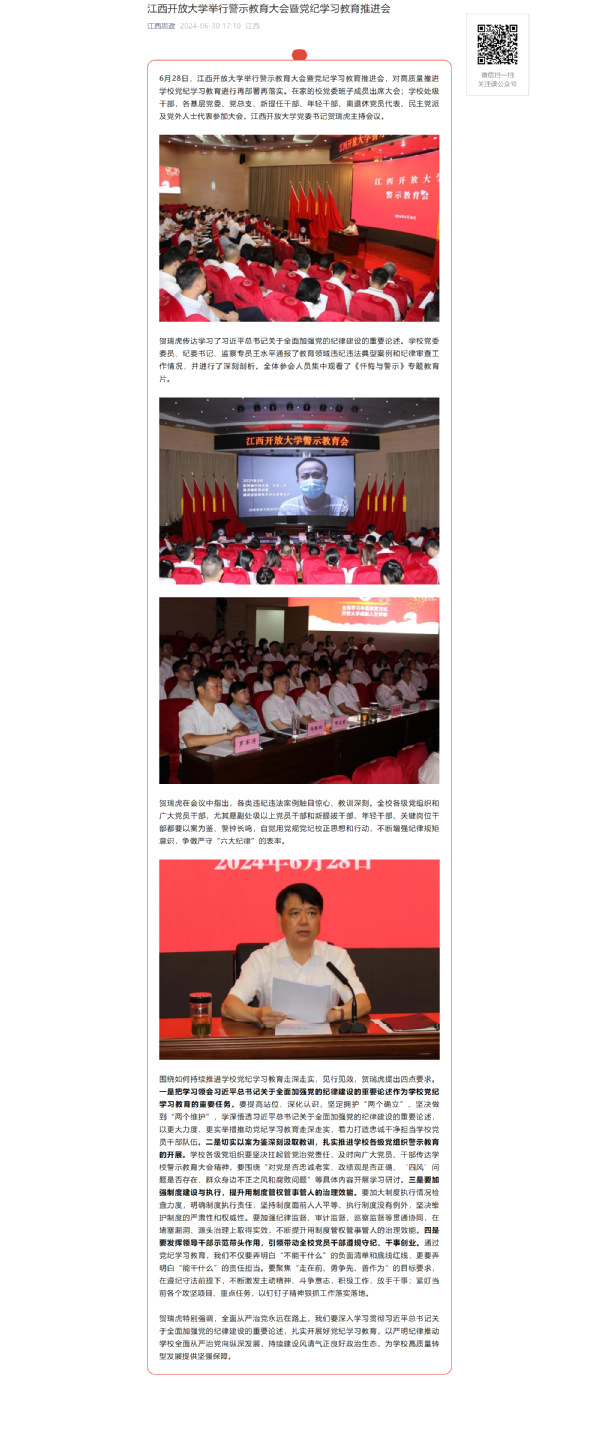 6月28日,英国上市365官网举行警示教育大会暨党纪学习教育推进会,对高质量推进学校党纪学习教育进行再部署再落实。在家的校党委班子成员出席大会;学校处级干部,各基层党委、党总支、新提任干部、年轻干部、离退休党员代表、民主党派及党外人士代表参加大会。英国上市365官网党委书记贺瑞虎主持会议。